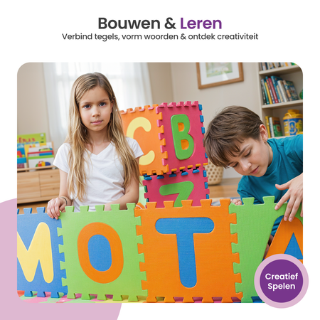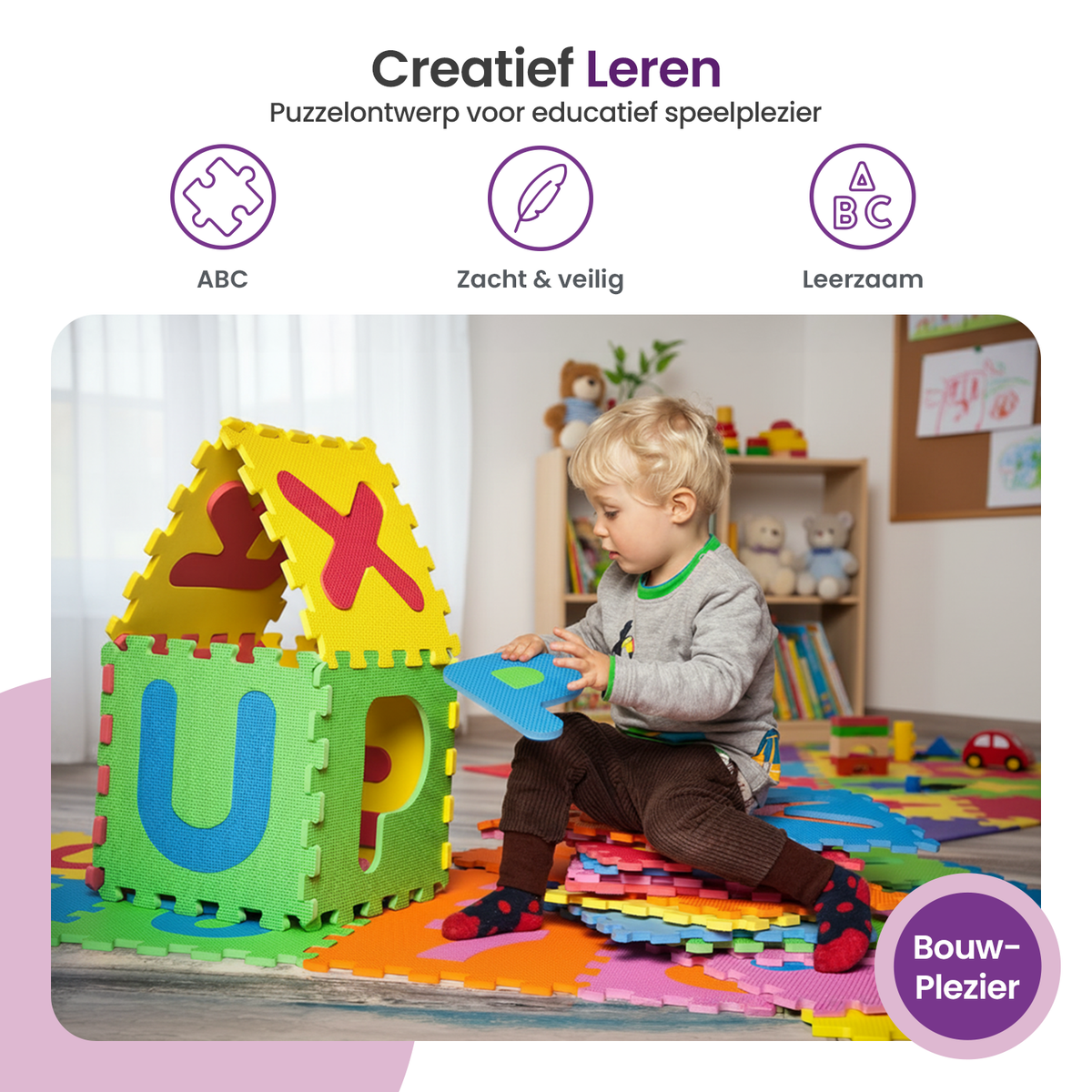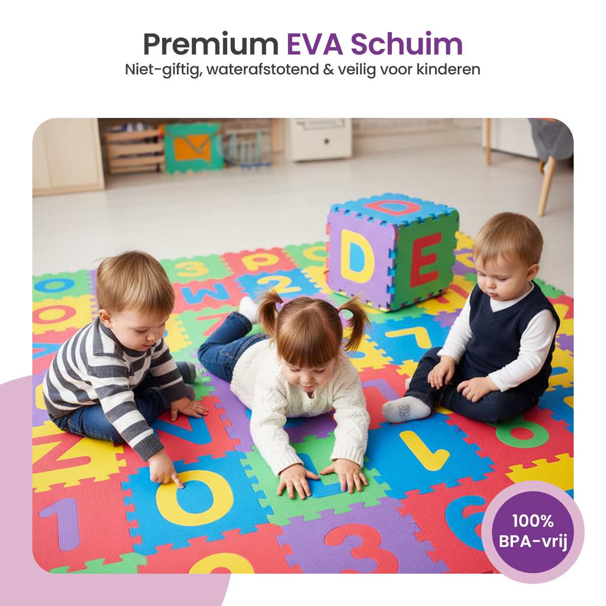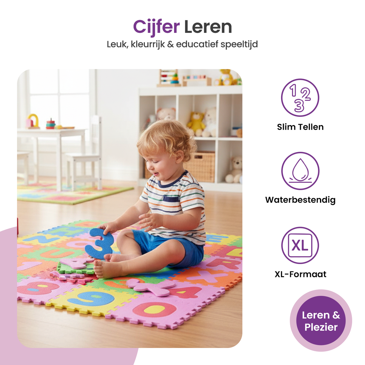Met deze speelmat kunnen kinderen op spelenderwijs het alfabet en de verschillende cijfers leren kennen. Hierdoor wordt de aanleg van nieuwe verbindingen in de hersenen van het kind gestimuleerd, wat bijdraagt aan het algehele denkvermogen. De speelmat is onder andere goed voor de ontwikkeling van logica door kinderen kennis te laten maken met letters, cijfers en woorden en draagt ook bij aan de ontwikkeling van de creativiteit.