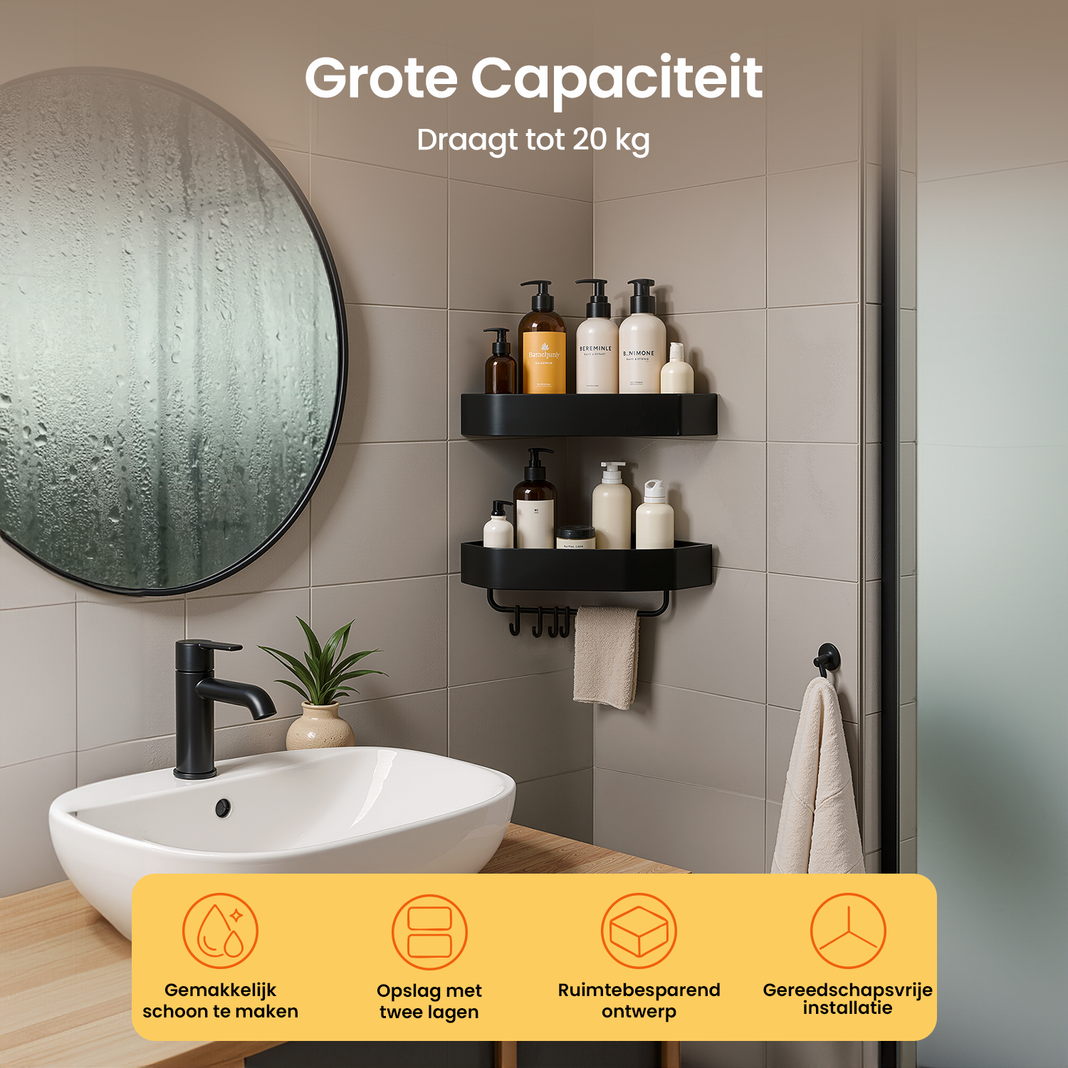 Goliving Doucherek 2 laags zonder boren - Zwart