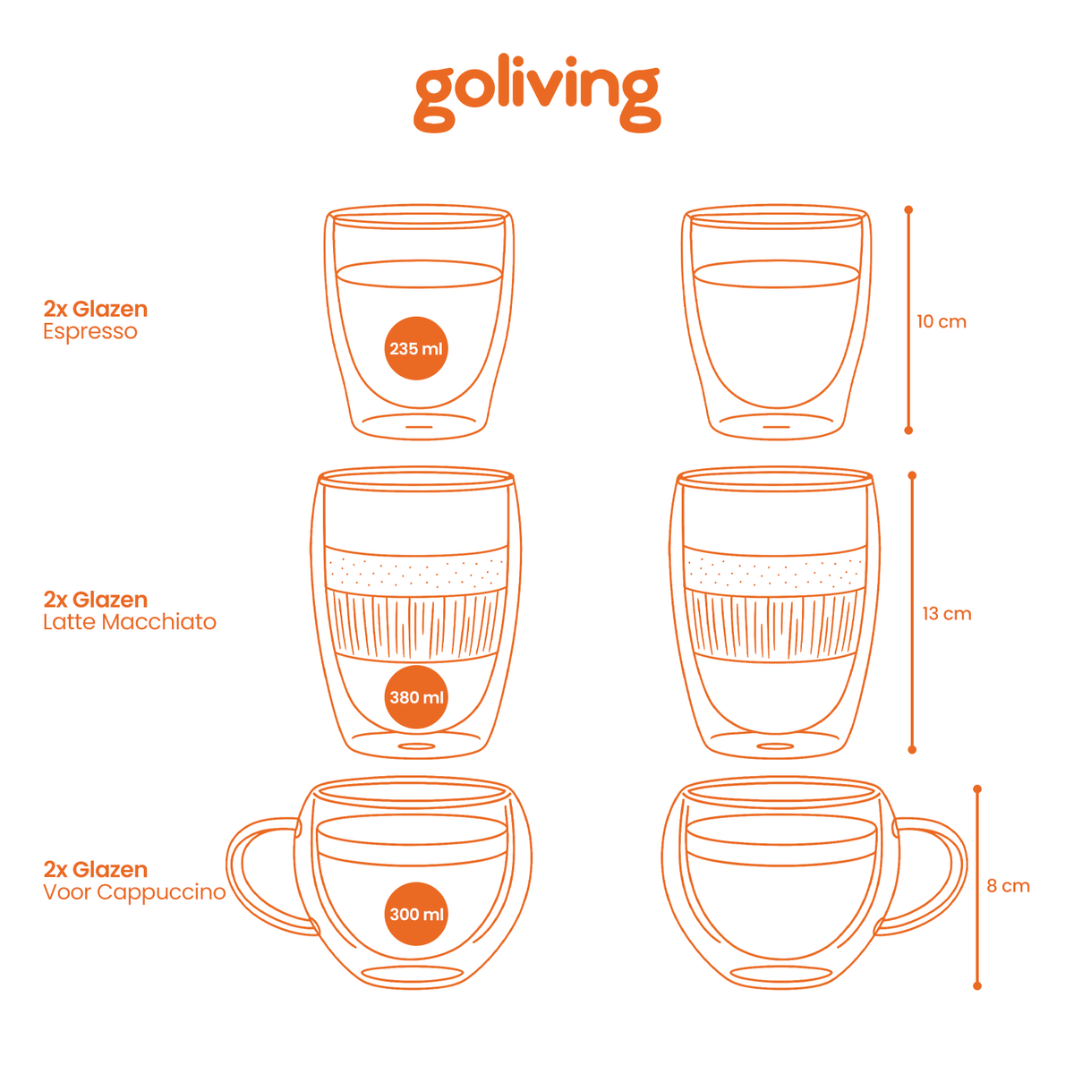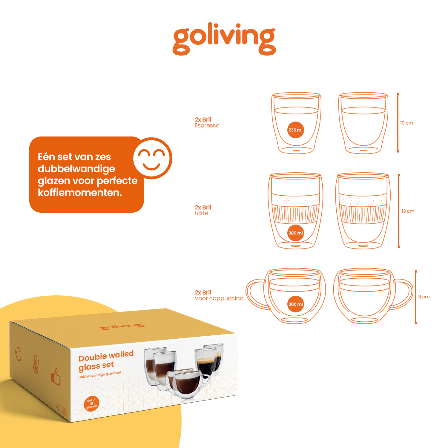 Goliving Dubbelwandige Koffieglazen - Set Van 6