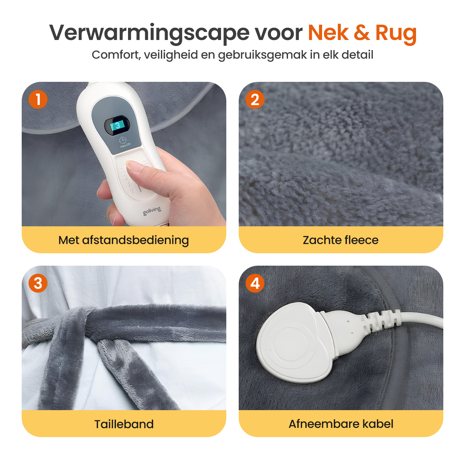 Met 3 warmtestanden en een handige timerfunctie pas je de Goliving Nek & Rug Warmer precies aan jouw behoeften aan. De click sluiting met drukknopjes en het royale snoer van 2.35 meter zorgen voor een moeiteloze en comfortabele ervaring, waardoor dit product zich onderscheidt in gebruiksvriendelijkheid.