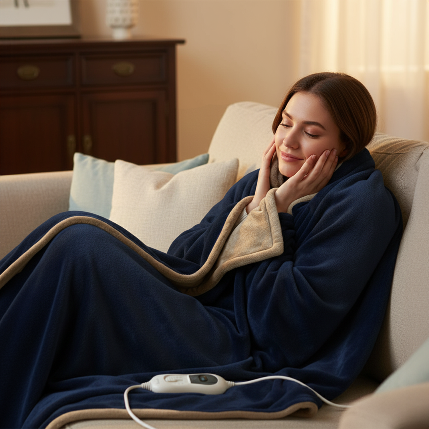Met 160×120cm biedt deze warmtedeken ruim voldoende oppervlakte om je volledig warm te houden. Ideaal voor op de bank, in bed of in je thuiswerkplek wanneer je extra warmte kunt gebruiken.