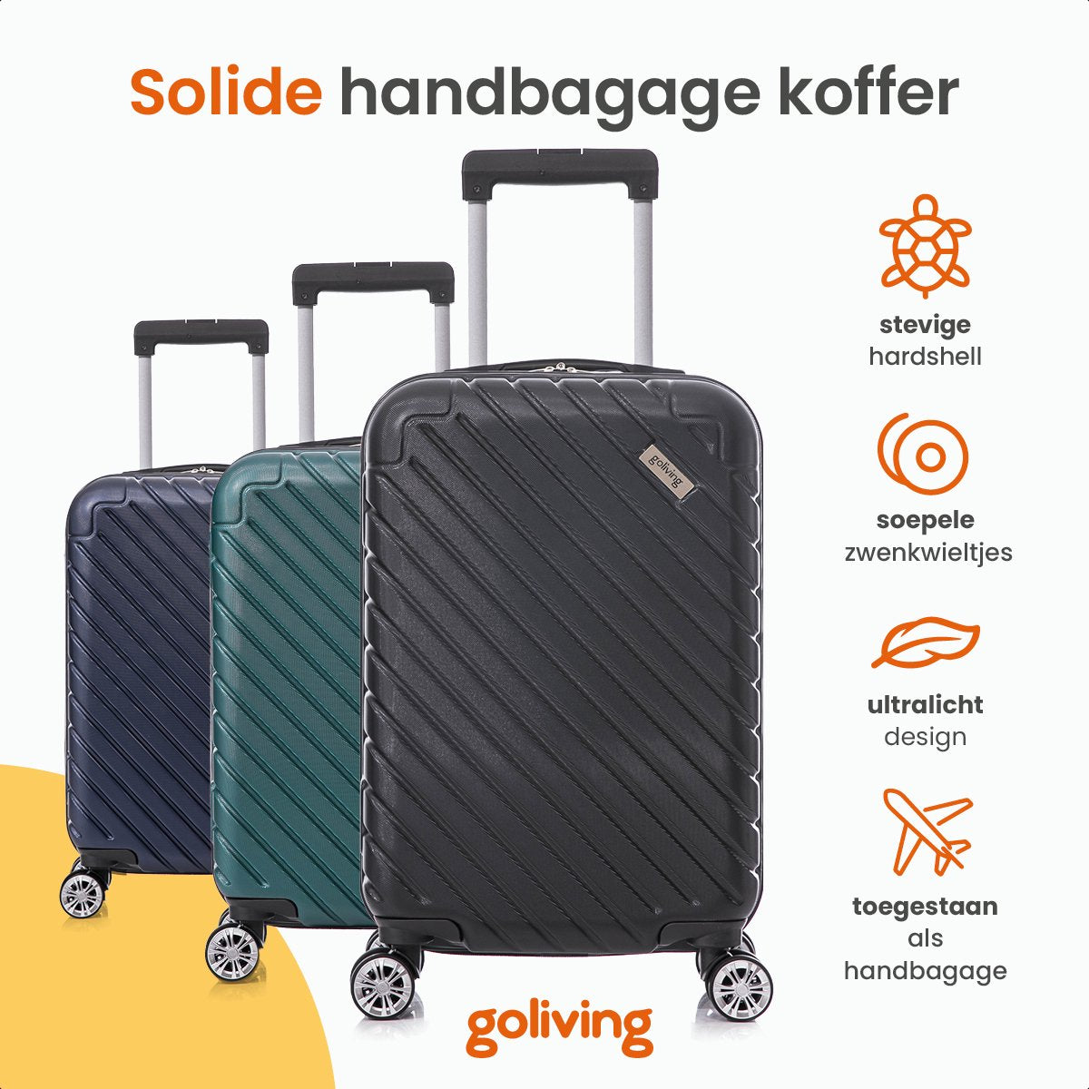 Met de Goliving handbagage koffer met wielen reis je comfortabel, overzichtelijk en zonder stress. Deze compacte handbagage trolley is ideaal voor korte trips, citytrips en zakenreizen. Dankzij het slimme formaat, het lichte gewicht en de soepele wielen neem je alles mee wat je nodig hebt, zonder in te leveren op gemak.