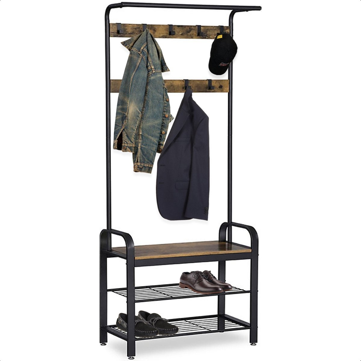 Met deze Goliving kapstok staand met schoenenrek geef je jouw hal of slaapkamer direct rust en overzicht. Jassen, tassen en schoenen krijgen allemaal hun eigen plek, terwijl het moderne bruine design zorgt voor een warme en stijlvolle uitstraling. Praktisch én een echte eyecatcher in je interieur.