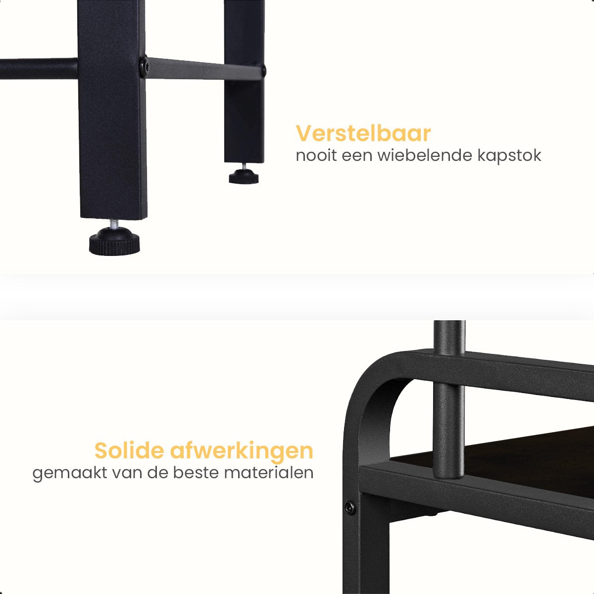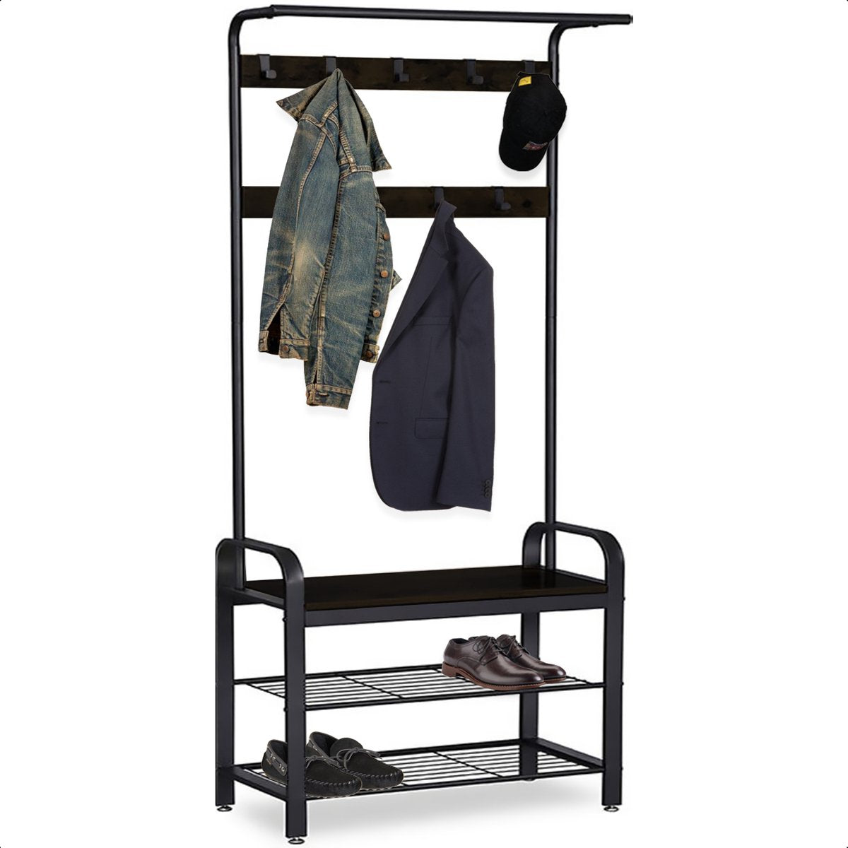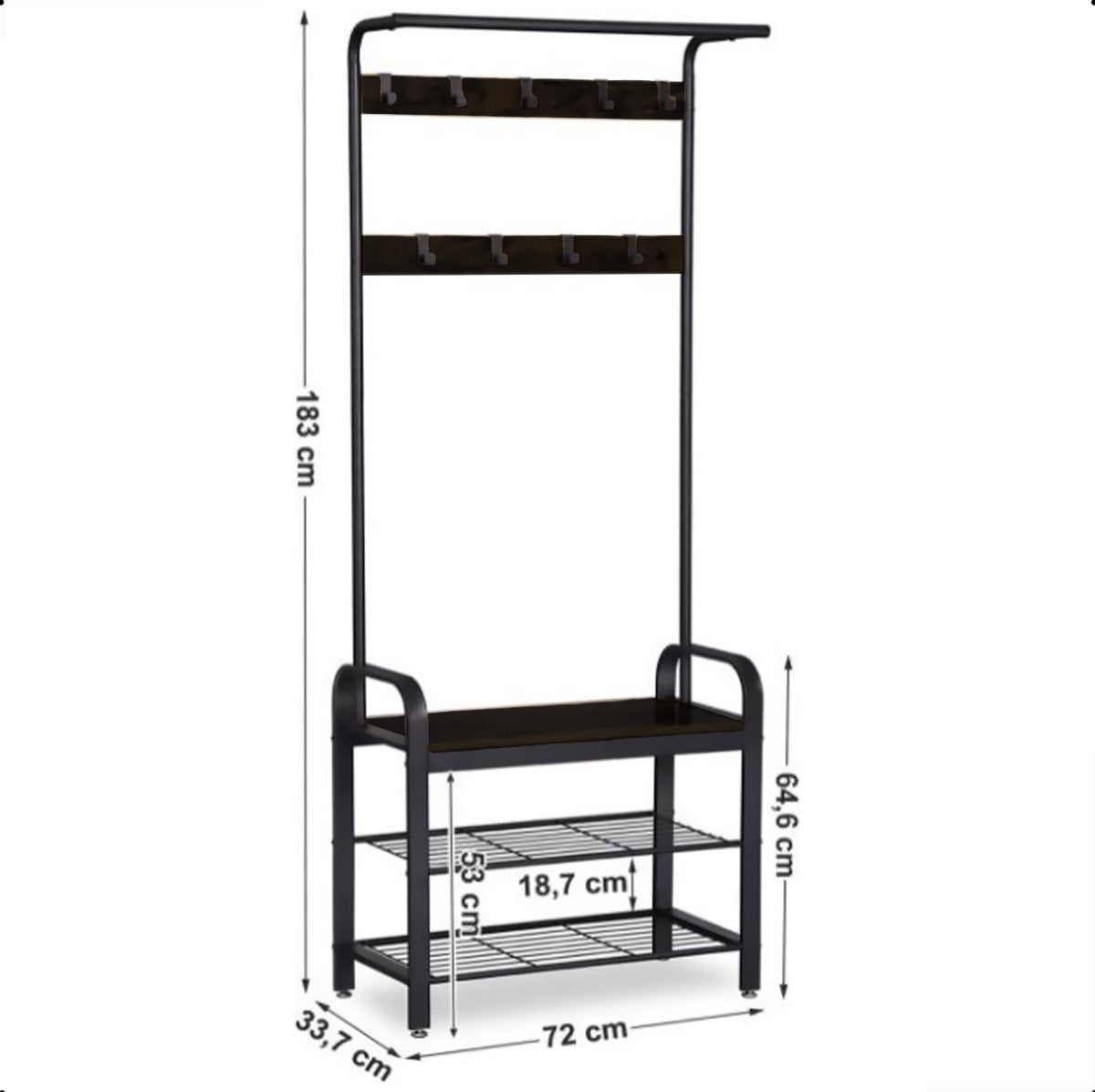 Met zijn bruin/zwarte kleur past hij perfect in elk interieur. Hang je jassen op, organiseer je schoenen en maak je entree compleet. Dit is het juiste product om je huis netjes en georganiseerd te houden.