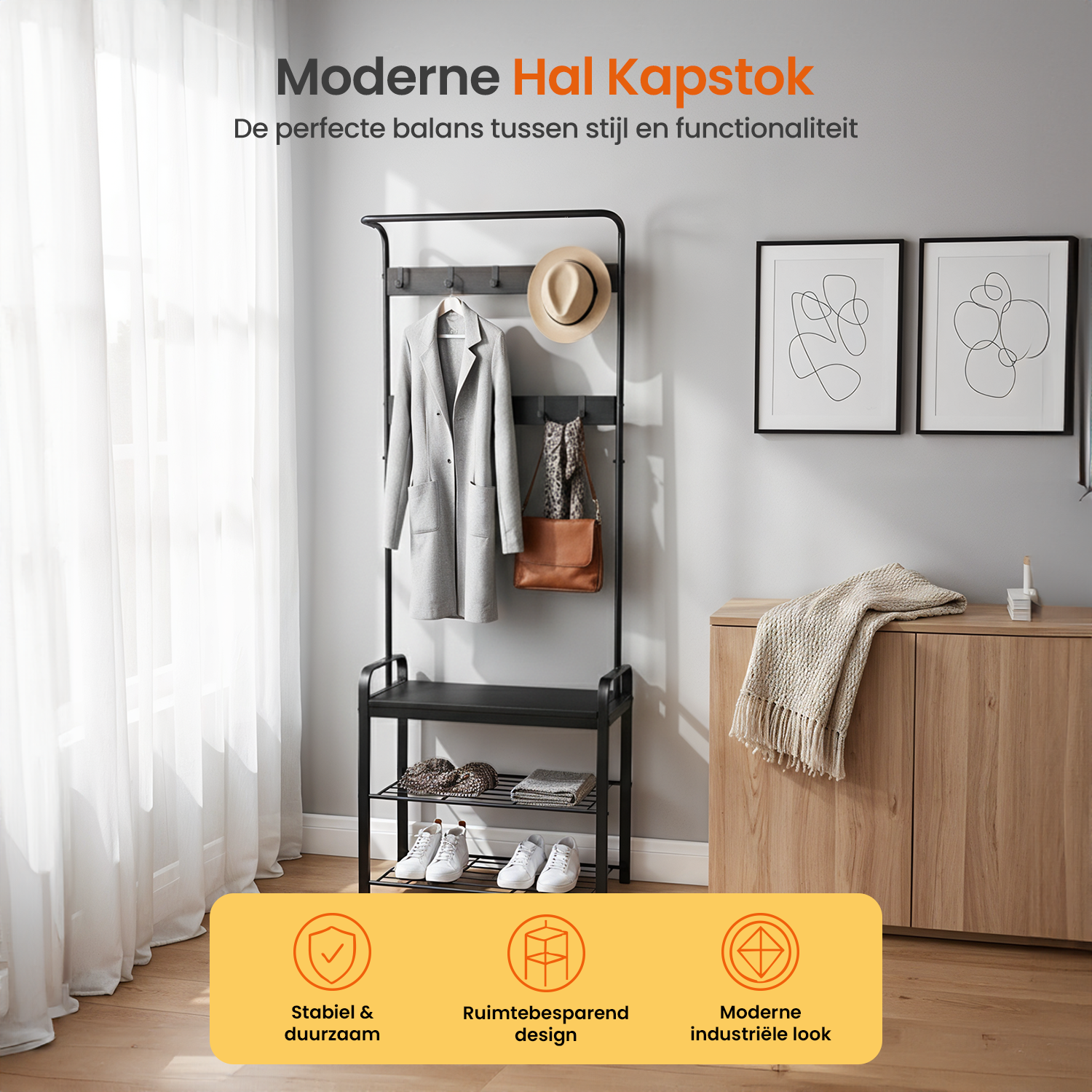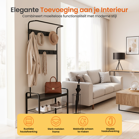- Functie: Kapstok, garderoberek en schoenenrek