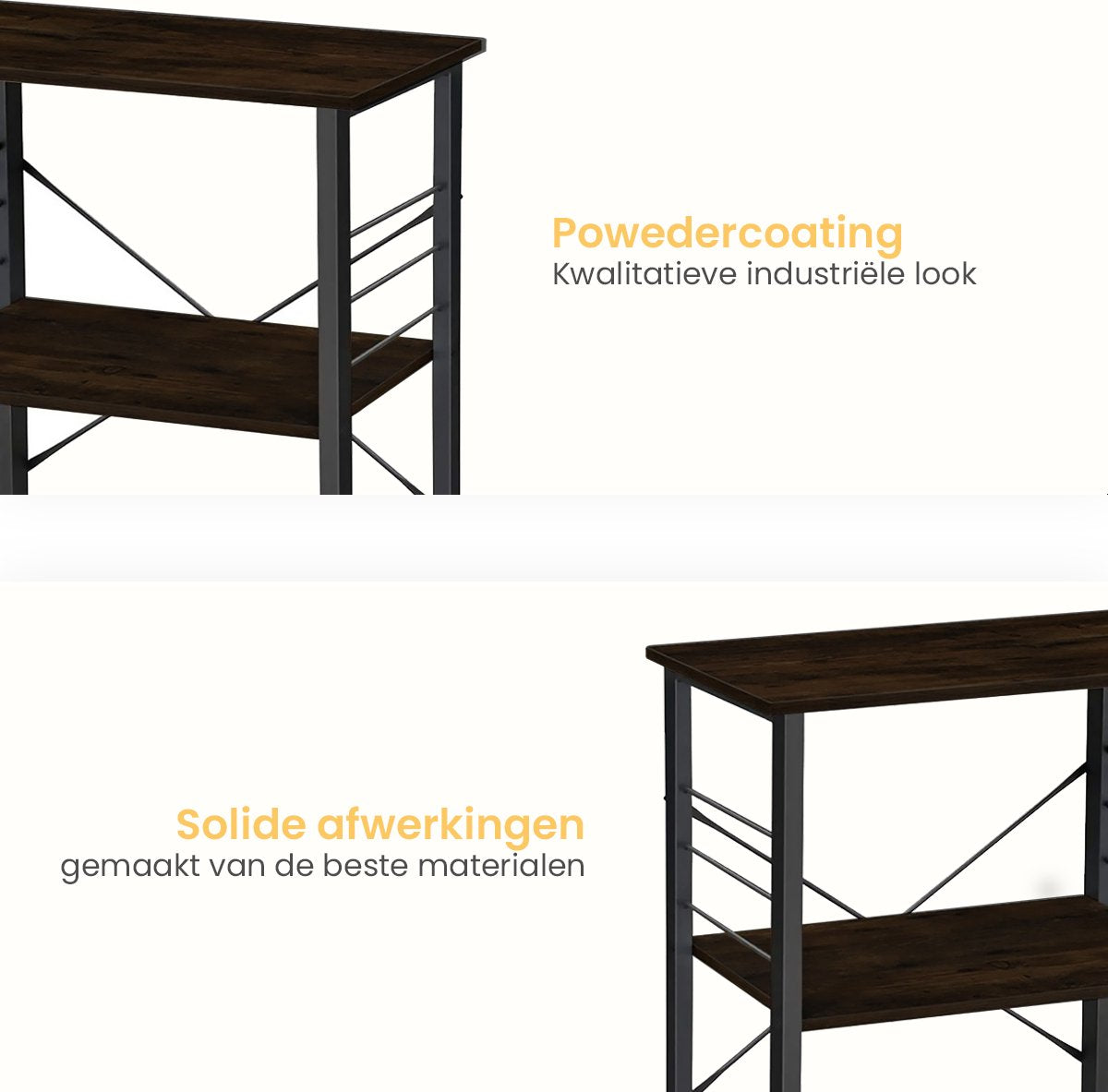 - De powdercoat zorgt voor een mooie afwerking en maakt de trolley extra stevig.