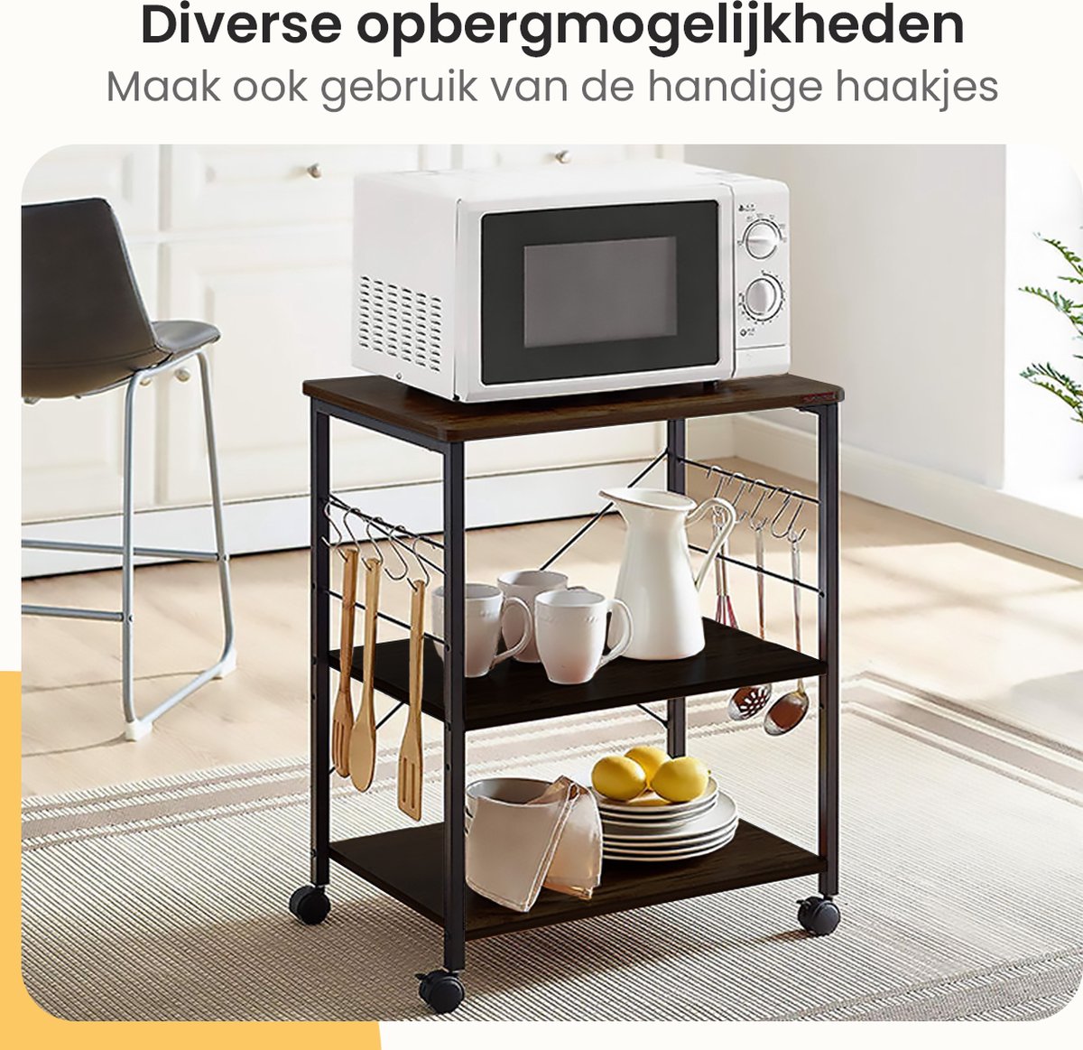 - Met deze keukentrolley heb je al je keukenspullen handig binnen handbereik.