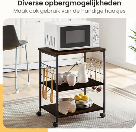 - De zwarte kleur van deze trolley past perfect bij elke keukeninrichting.