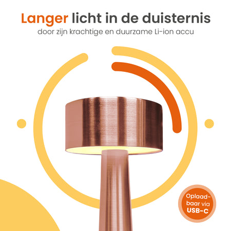 De lamp wordt eenvoudig opgeladen via USB-C, waardoor je hem snel weer klaar hebt voor gebruik.
