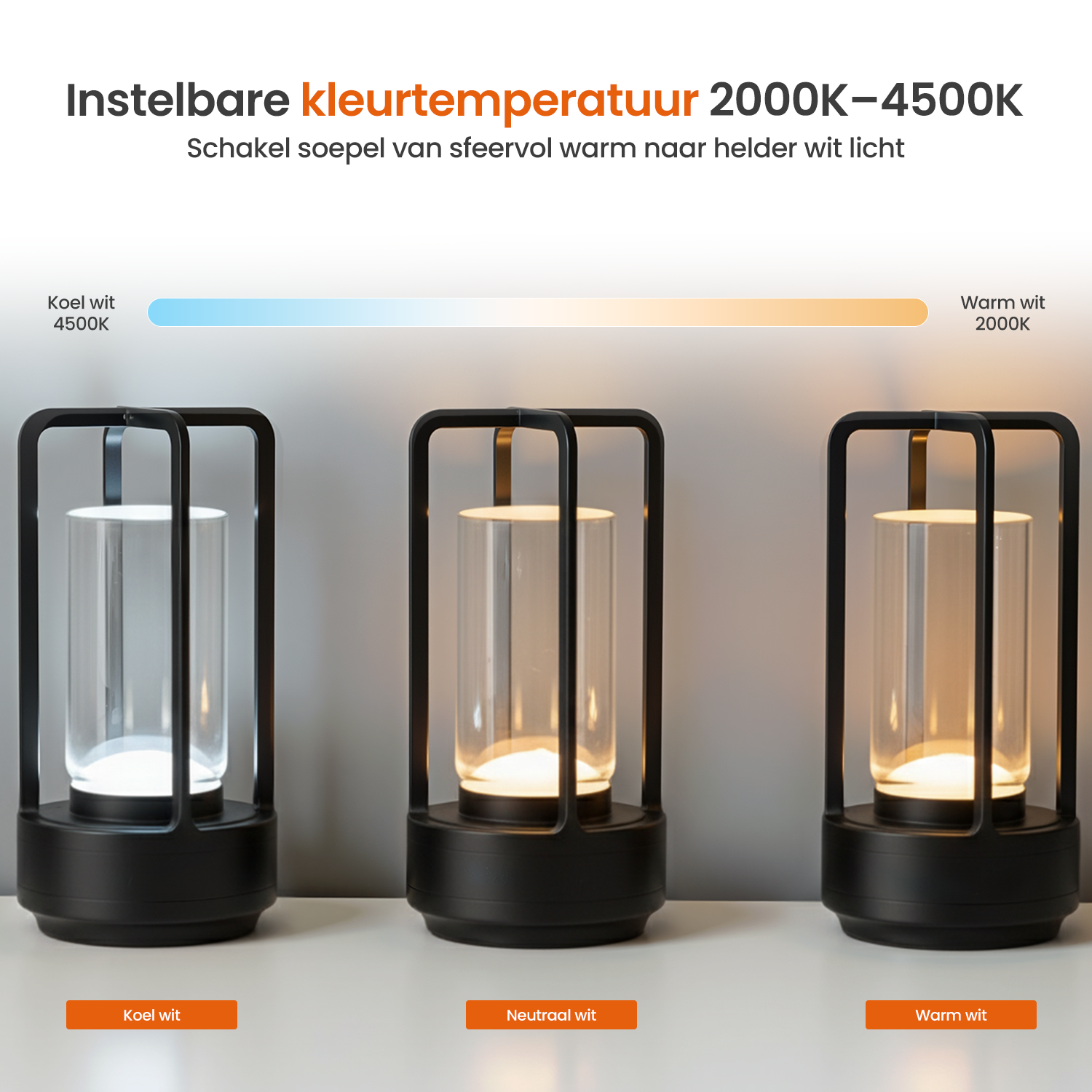 Op zoek naar een stijlvolle tafellamp voor jouw slaapkamer, woonkamer of eettafel? De oplaadbare Goliving Tafellamp in goud brengt warmte, sfeer en luxe naar iedere ruimte. Dankzij de krachtige 1300mAh accu geniet je tot wel 10 uur draadloos van prachtig warm wit licht, zonder gedoe met snoeren of stopcontacten. Perfect als tafellamp oplaadbaar, als nachtlampje of als eyecatcher in jouw interieur.