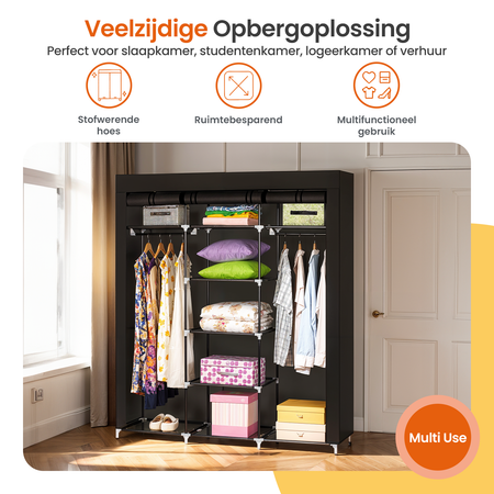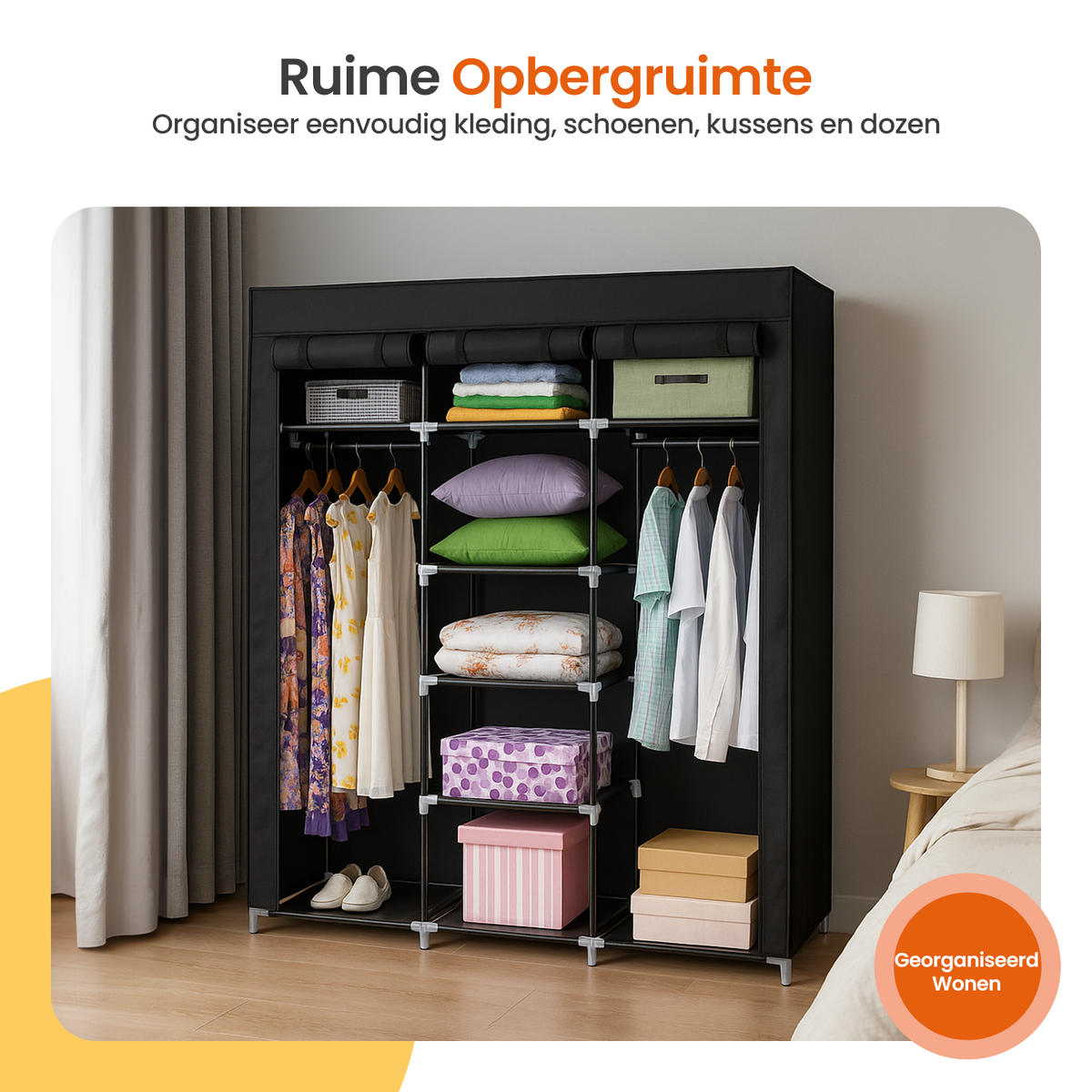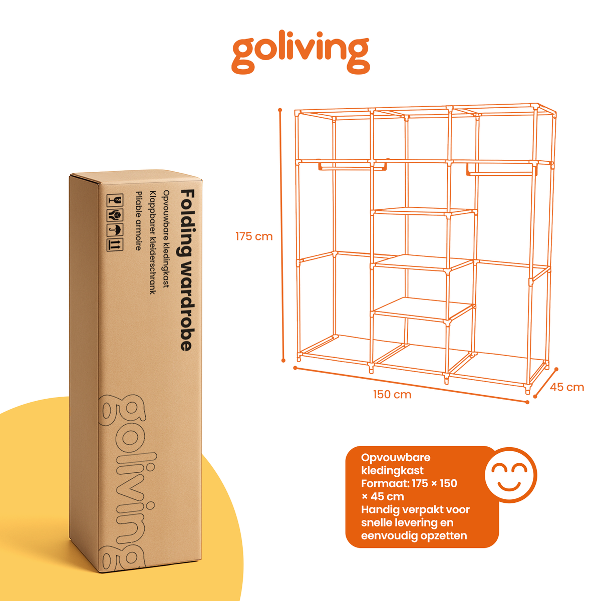 De Goliving opvouwbare kledingkast van stof is een snelle opbergoplossing voor je kleding, die je overal mee naar toe neemt.