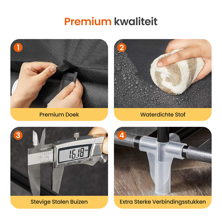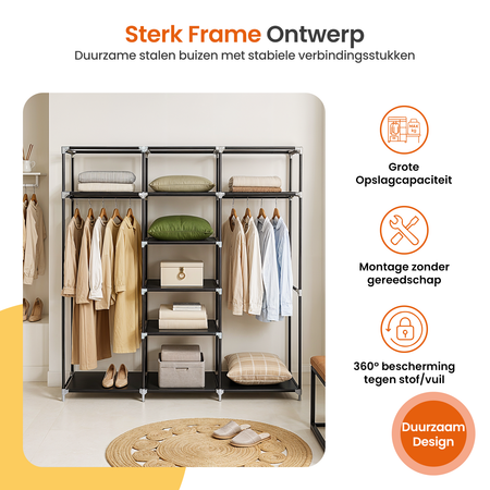 De opvouwbare kledingkast houdt je kleding altijd netjes. Stof en vuil maken zo geen kans meer. En wanneer je de deuren dicht ritst, zijn jouw kledingstukken volledig beschermt tegen vocht en water.