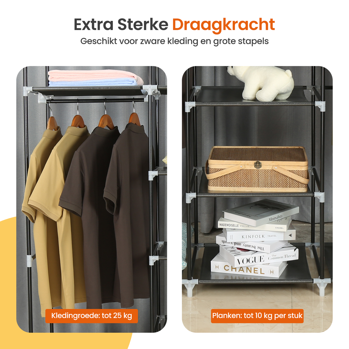 Een opvouwbare kledingkast kan een echte oplossing zijn. Deze handige Goliving kledingkast van stof is binnen no-time in elkaar te zetten en uit elkaar te halen, zónder gereedschap. Perfect als je nog niet weet waar je je kast neer gaat zetten, een simpele garderobe zoekt voor bij het kamperen, of bijvoorbeeld een nette organizer wilt om winter- en zomerkleding gescheiden te houden.