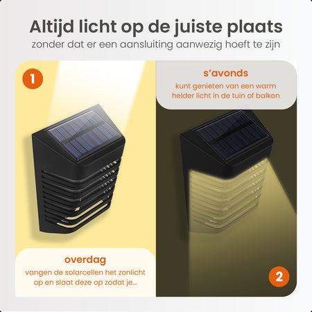 Dankzij de solar wandlamp zorg je voor een stukje extra sfeer in de tuin. Hierdoor kun je ook nog in het donker gezellig in de tuin zitten en daarnaast ook vanuit huis genieten van een mooi verlichte tuin. De solar lamp zorgt ervoor dat de tuin gezellig aanvoelt, zeker wanneer het gaat schemeren en de lamp automatisch aan gaat.