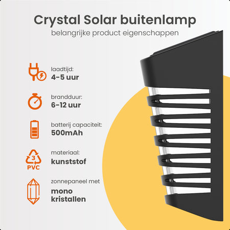 De solar tuinverlichting is voorzien van een modern design dat goed tot zijn recht komt in vrijwel iedere tuin. De lamp heeft een mat zwarte afwerking en is aan de onderkant voorzien van een rooster dat het licht op een speelse manier verspreid. De solar wandlamp is daarnaast aan de bovenkant voorzien van een ingebouwd zonnepaneel die overdag de energie van de zon op kan vangen. Deze energie wordt vervolgens opgeslagen in de ingebouwde lithium batterij en gebruikt wanneer het donker wordt.