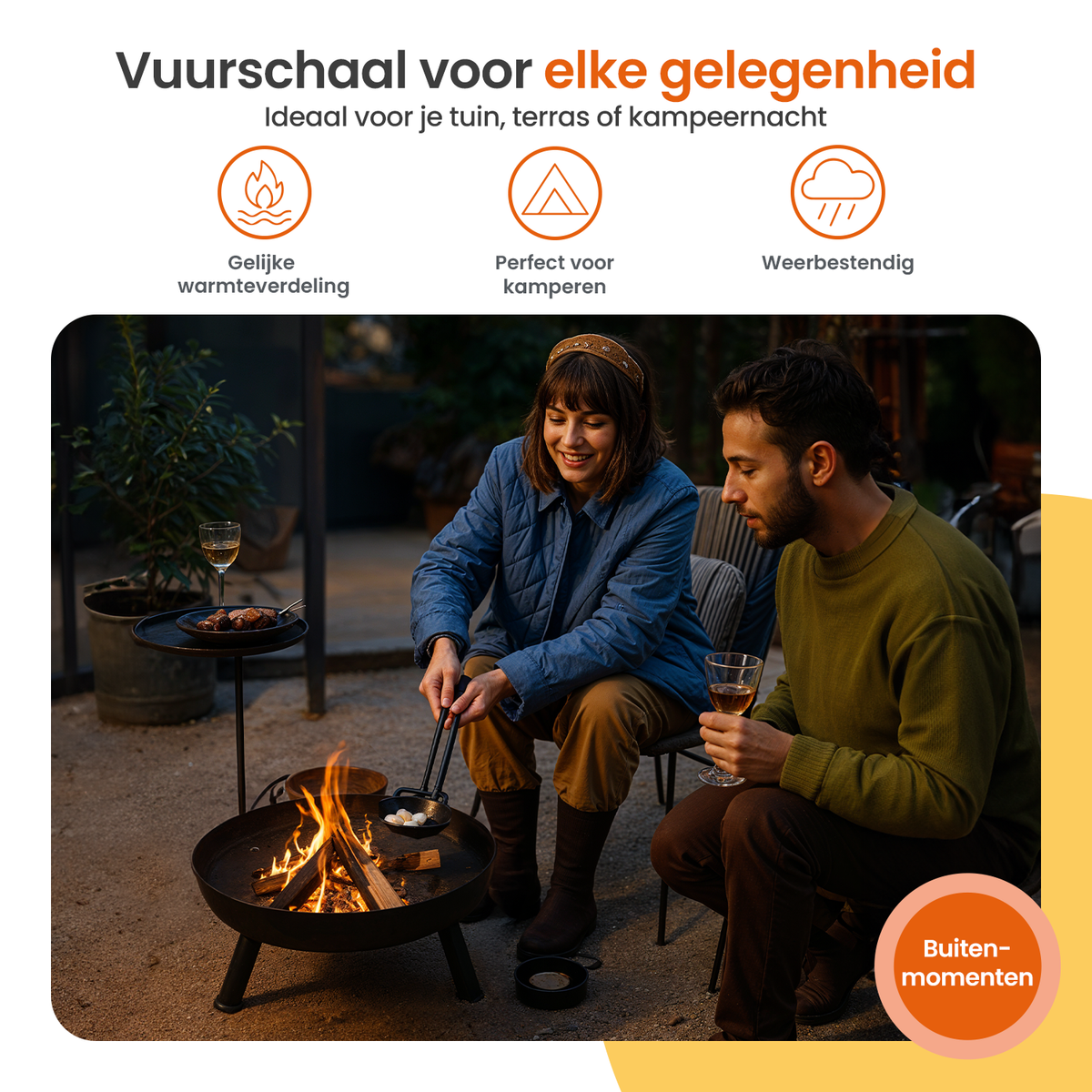 - Functionaliteit: Vuurschaal / vuurkorf / BBQ (met eigen rooster)