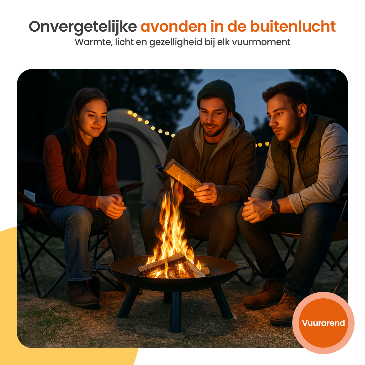 Stel je voor: je zit buiten met vrienden of familie, de sfeer is perfect, maar de temperatuur zakt net te snel. Je merkt dat iedereen langzaam dichter bij de deur gaat zitten omdat het toch te fris wordt. Met de Goliving vuurschaal 60 cm maak je van elke frisse avond een warme, sfeervolle en uitnodigende plek. De brede stalen schaal zorgt voor een krachtig en gezellig vuur, waardoor je langer buiten blijft genieten en je tuin direct meer ambiance krijgt. Ideaal voor borrels, familieavonden, vakantie, camping en elke gezellige gelegenheid in de buitenlucht.