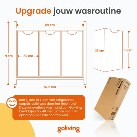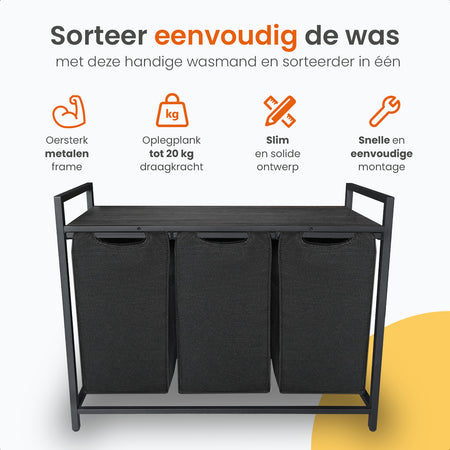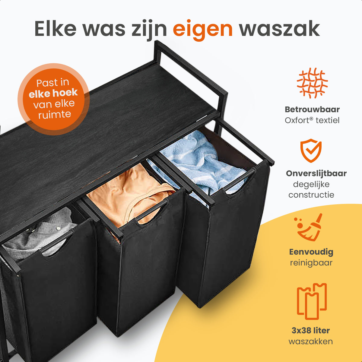 Heb je ooit staan staren naar die berg ongesorteerde was die zich blijft opstapelen, zonder enig idee waar te beginnen? Onze wassorteerder, met 3 ruime wasmanden van 38 liter, biedt een slimme oplossing. Eenvoudige montage, uitneembare waszakken en een stijlvol ontwerp maken het sorteren van was een moeiteloze taak. Ontdek de oplossing voor een georganiseerde wasroutine!