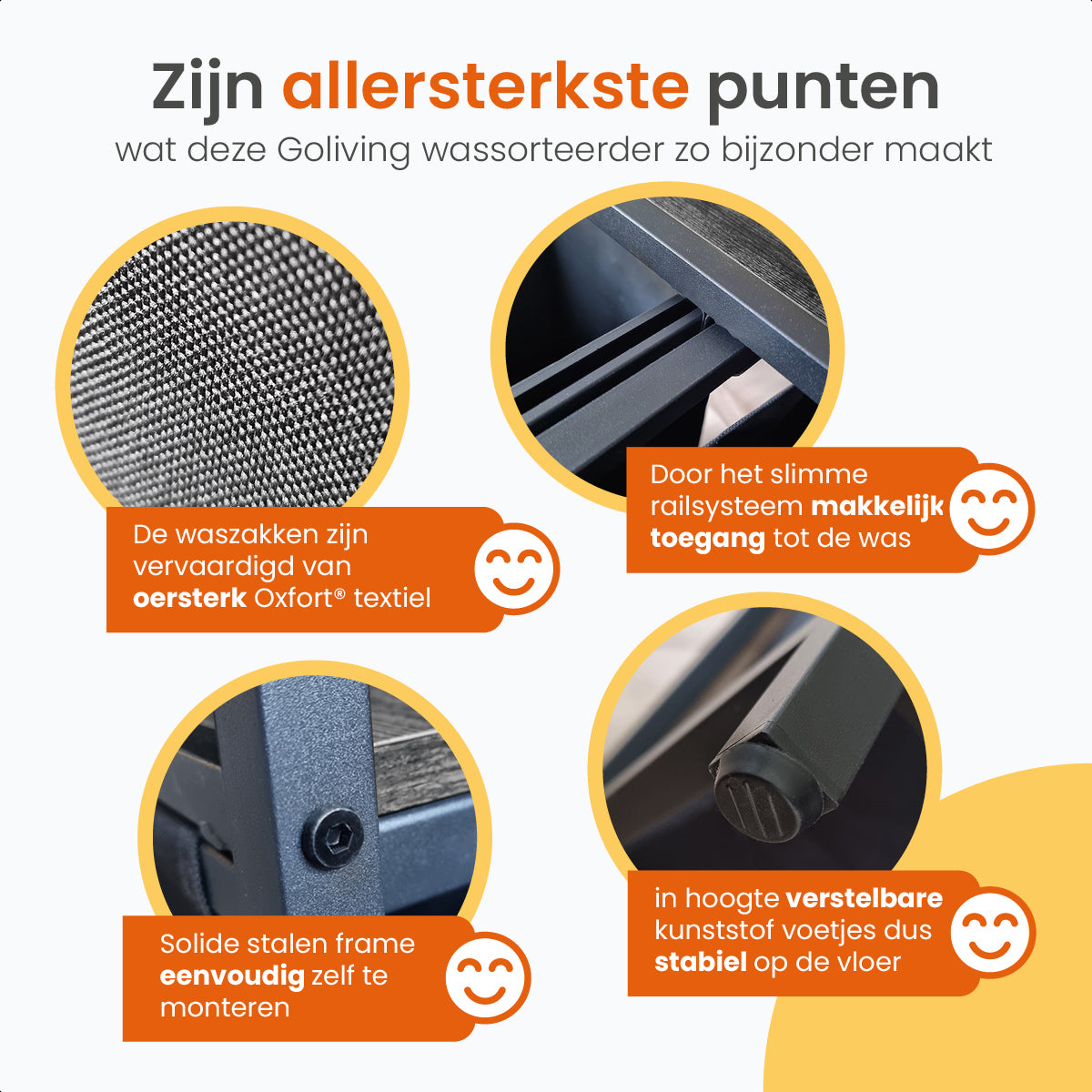 Goliving Wassorteerder - 3 x 38 Liter - Zwart