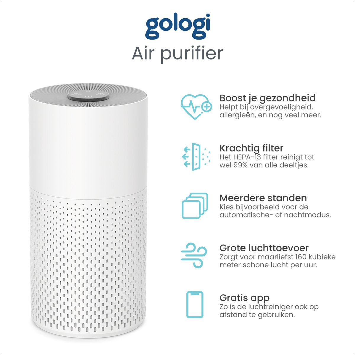 De Gologi luchtreiniger reinigt elke kamer tot 210 1x per uur!