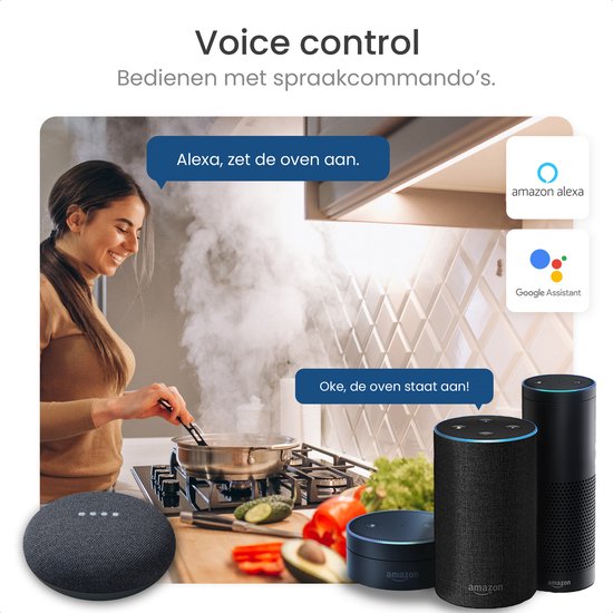 · Stembediening – De slimme stekker is ook via Alexa en Google Home te bedienen. Hierdoor kun je jouw apparaten op afstand met spraakbediening besturen.