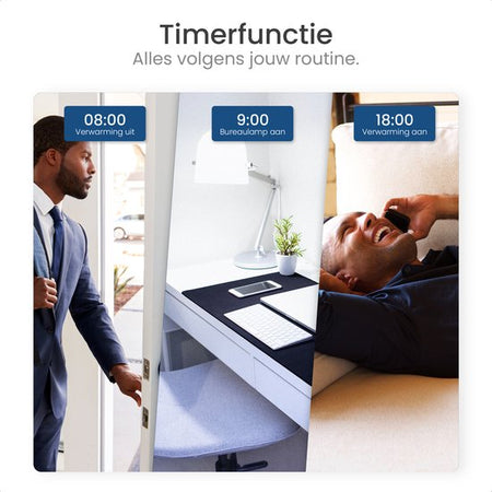 · Automatisch aan en uit – Deze stekker is ideaal voor apparaten die je wel eens vergeet uit te zetten. De stekker is namelijk voorzien van een timerfunctie die apparaten na bijvoorbeeld 30 minuten automatisch uitschakelt.