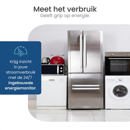 · Met energiemonitor – Wil je graag weten welke apparaten de meeste energie verbruiken? Dankzij de energiemonitor meet je heel nauwkeurig het verbruik van verschillende apparaten, zodat je precies weet welke apparaten het meest verbruiken.