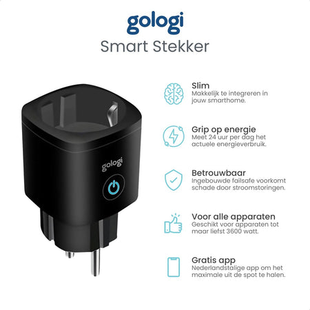 Let op! De Gologi Slimme stekker werkt niet in België vanwege het type stekker.