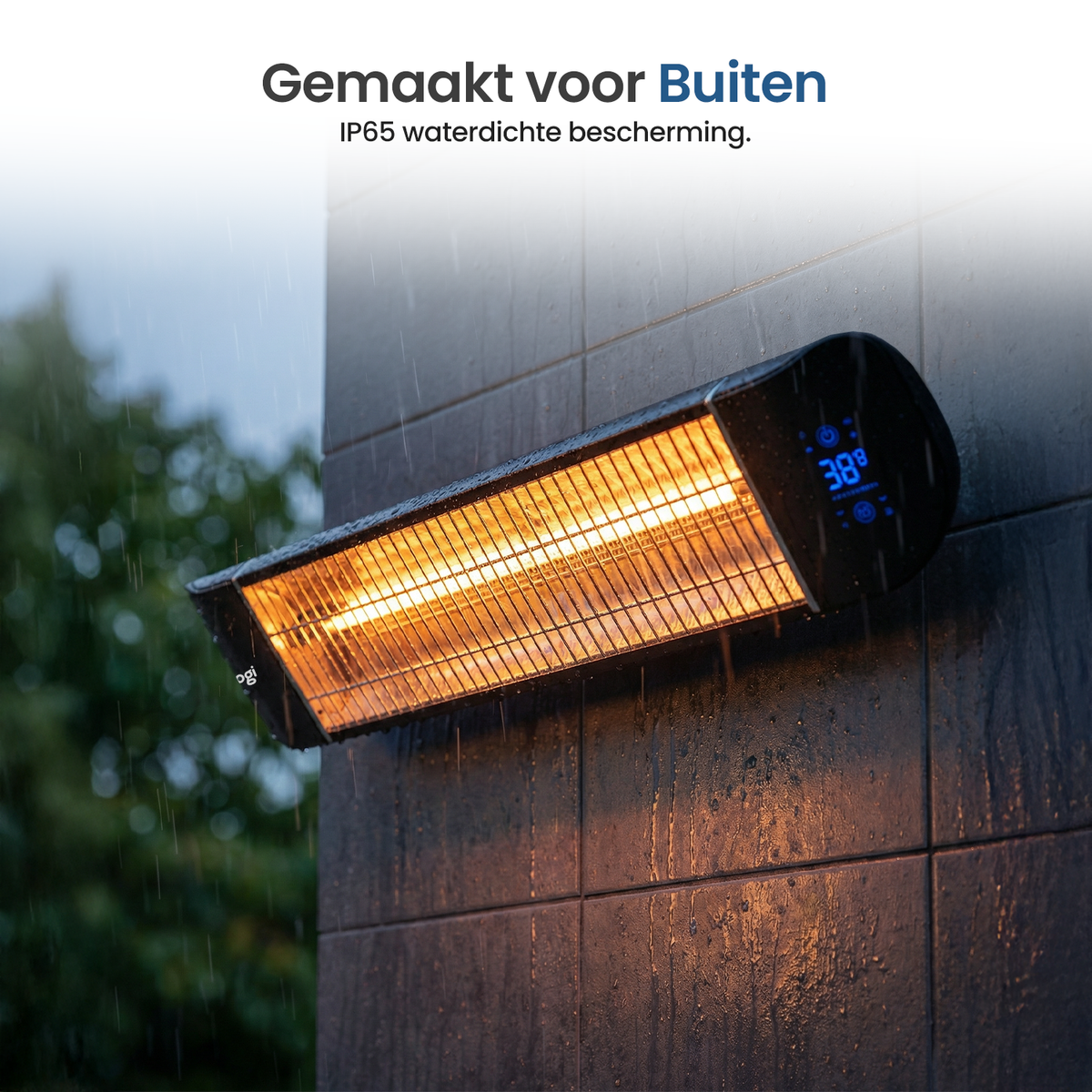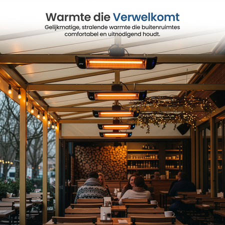 De elektrische terrasverwarmer is volledig veilig, met ingebouwde overhittingsbeveiliging. Deze functie schakelt de heater uit wanneer deze te warm wordt, waardoor schade of brandgevaar wordt voorkomen.