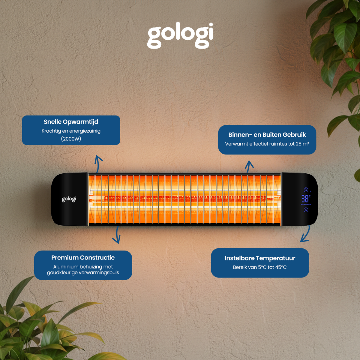 Gologi Slimme Terrasverwarmer - 2000W - Zwart