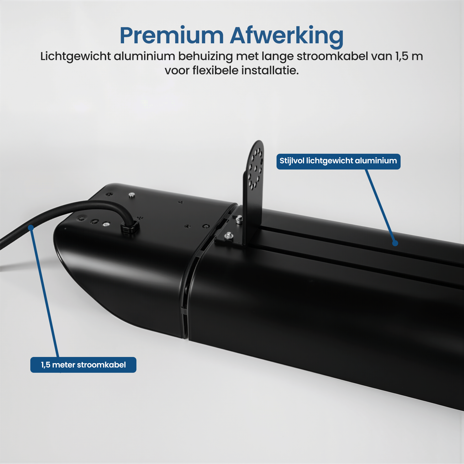 - Snelle opwarmtijd – De heater straalt al binnen 1 seconde warmte uit.