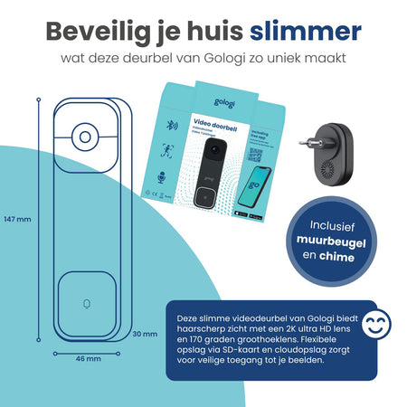 Houd je huis veilig met de Gologi video deurbel, een slimme deurbel met camera en WiFi die je een ongeëvenaarde controle en gemoedsrust biedt.