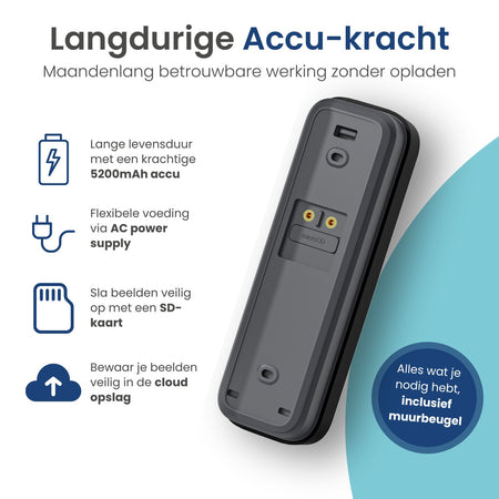 Dankzij de draadloze verbinding van de Gologi video deurbel ben je niet gebonden aan kabels en ingewikkelde installaties. De deurbel werkt op een krachtige 5200mAh oplaadbare accu, wat zorgt voor een lange levensduur en minder oplaadbeurten. Door de krachtige accu gaat deze ongeveer 4 maanden mee zonder op te laden. Bovendien is de deurbel gemakkelijk te installeren in de Gologi app.