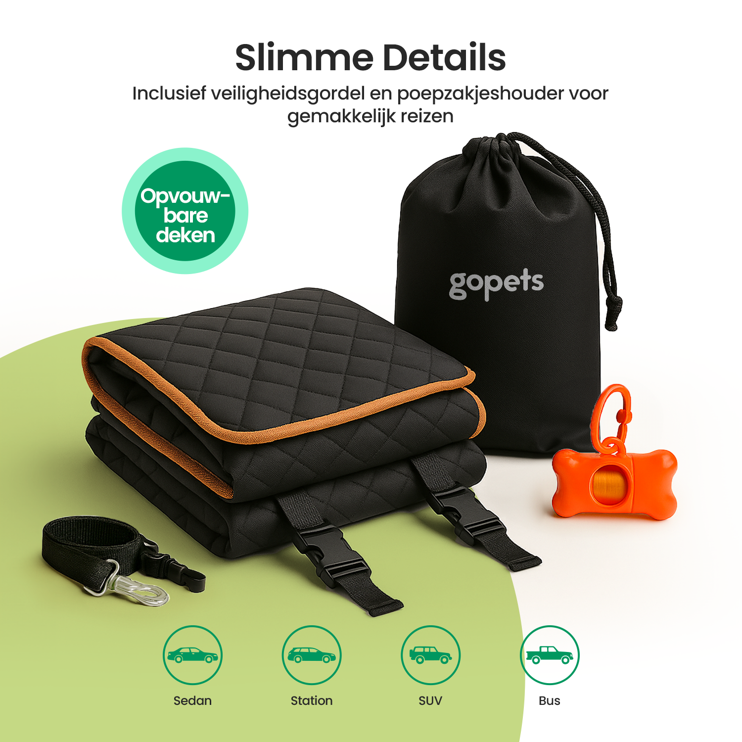 Het Gopets hondendeken zit vol slimme details. Zo zijn er uitsparingen waar je de gordel doorheen kun halen, en zijn de uiteinden voorzien van flappen om ook de zijkant van jouw achterbank te beschermen. Door de bevestiging op vier punten - die je makkelijk vastklikt - blijft het autokleed altijd goed op zijn plek. Met de bijgeleverde hondengordel ben je er bovendien van verzekerd dat jouw hond geen onverwachte capriolen maakt.